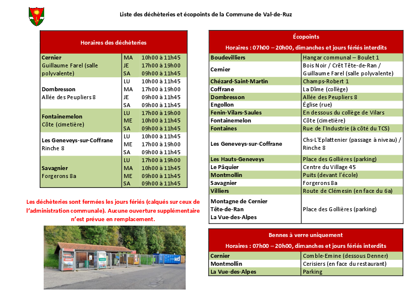 Actuellement, seule l'entreprise SVEDEL SA est autorisée à collecter les déchets urbains sur le territoire de la Commune de Val-de-Ruz, sauf accord contraire de la Commune.